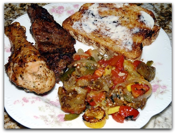 and grill a few slices of wheat and oat bread using the vegetables as a bruschetta.